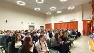 Сегодня МУ ДК «Матыра» организовало и провело в МБОУ СШ №54 торжественное мероприятие, посвященное этой важнейшей дате. Ярким украшением праздника стали творческие номера коллективов МУ ДК «Матыра», которые наполнили зал атмосферой гордости и уважения. Особой и важной частью программы стала встреча с нашим почетным гостем — ветераном боевых действий СВО, Пинчук Алексеем Владимировичем. Боец поделился своими воспоминаниями и рассказал ребятам о долге, чести и настоящем мужестве. Ребята с интересом слушали его, рассматривали фото и шевроны, которые с собой принес Алексей Владимирович.