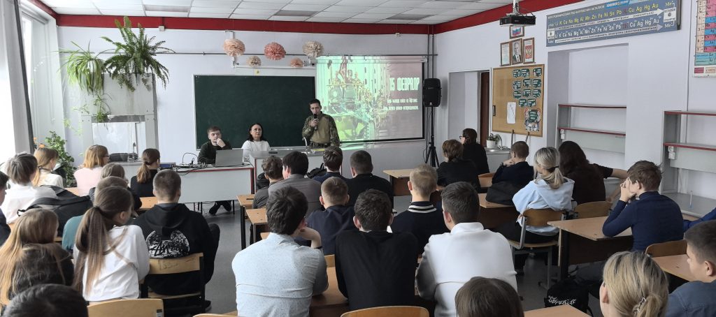 Участники студии театрального мастерства «Мельпомена» подготовили информационную тематическую программу, затем состоялся урок мужества, на котором ветеран боевых действий Специальной военной операции Алексей Владимирович Пинчук ответил на вопросы учащихся. Мероприятие проведено совместно с филиалом Государственного фонда поддержки участников специальной военной операции «Защитники Отечества» по Липецкой области.