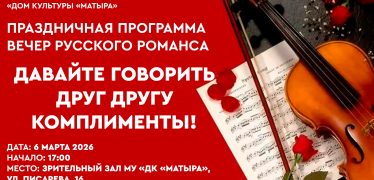 Праздничная программа. Вечер русского романса. ДАВАЙТЕ ГОВОРИТЬ ДРУГ ДРУГУ КОМПЛИМЕНТЫ!