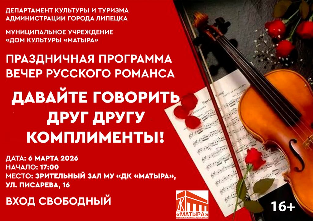 Праздничная программа. Вечер русского романса. ДАВАЙТЕ ГОВОРИТЬ ДРУГ ДРУГУ КОМПЛИМЕНТЫ!